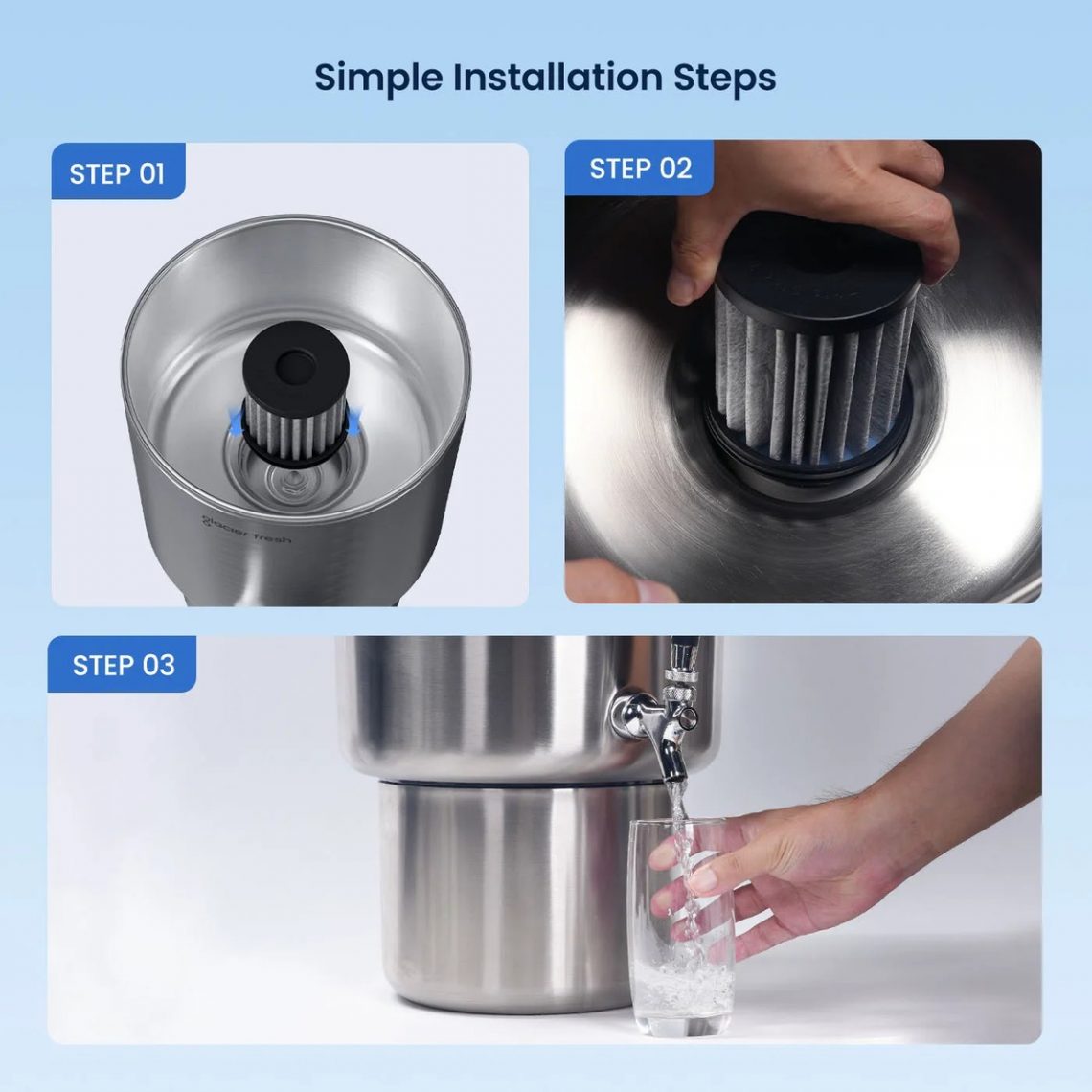 * “After doing some research, I picked a Glacier Fresh filter because of its certifications. Knowing it’s effectively removing contaminants gives me such peace of mind, especially with young kids in the house. The taste is just a bonus!” – *David L. from California*